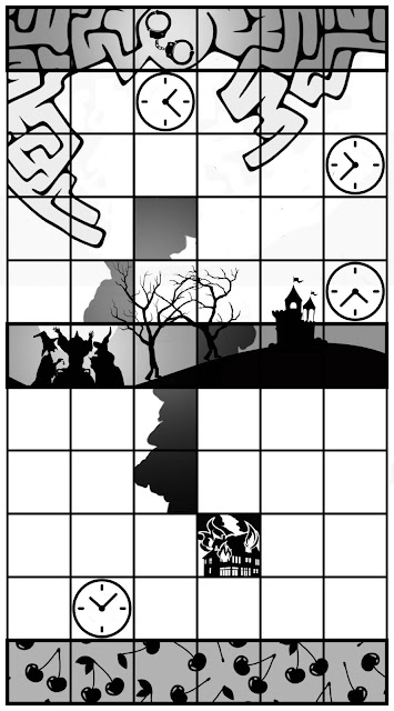 Rešiste kriptopasijans - a lavirint se spontano prostro u drugi i treći red. Imao sam razne planove s tim lavirintom, ali na kraju je ispao ovako. Prva ideja je bila da se izlaz iz lavirinta s jedne strane pretvori u ulaz u lavirint s druge strane (što bi opisalo bezizlaznost situacije). Međutim, u "Procesu" situacija nije ista kao u npr. "Alisi s one strane ogledala" (gde, kojim god putem da kreneš, vraćaš se na isto mesto) - Kafkin glavni junak se na kraju svog lutanja ne vraća na početak (upravo suprotno). Zato sam odustao od toga i samo uklopio oblik lavirinta sa ostalim popunjenim poljima u gornjem delu.